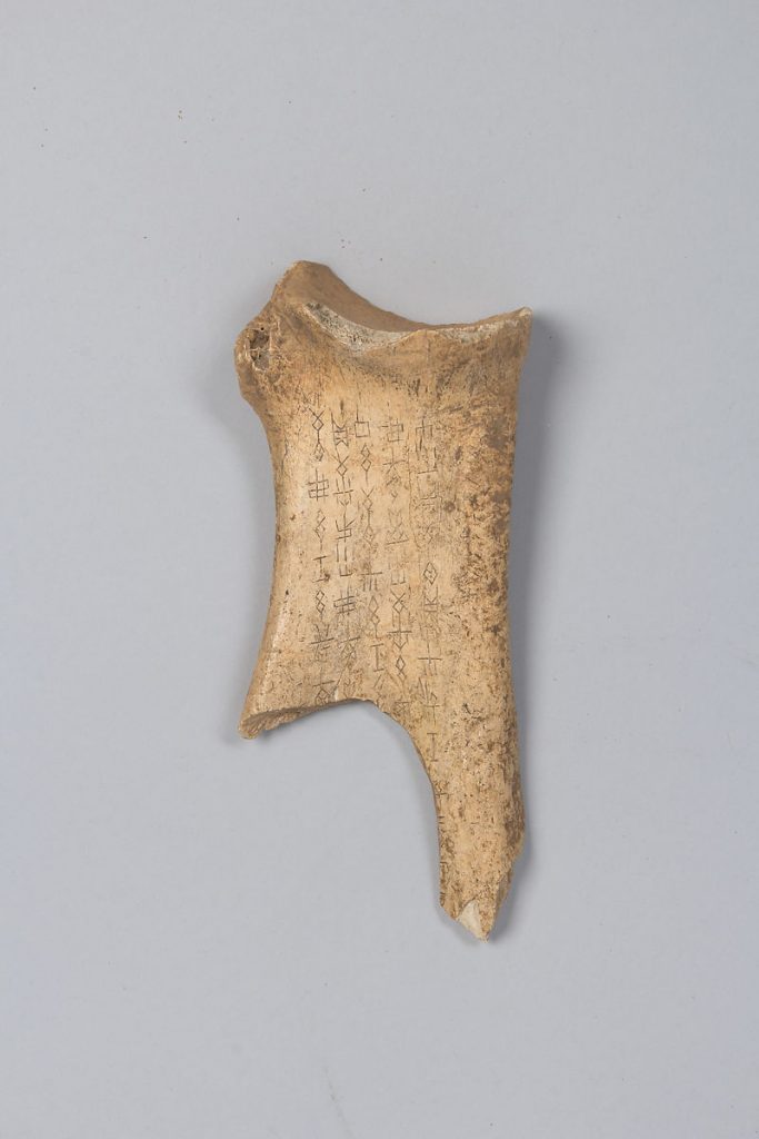 Still inscribed onto bone, in 1992 an older version of jia gu wen was discovered in the Shandong Province. The set of twelve older bones were able to be dated back to the Longshan culture (3000-1900BC). Subsequently this confirms that the jia gu wen of the Shang Dynasty is a matured, polished version of Longshan Culture’s inscriptions.