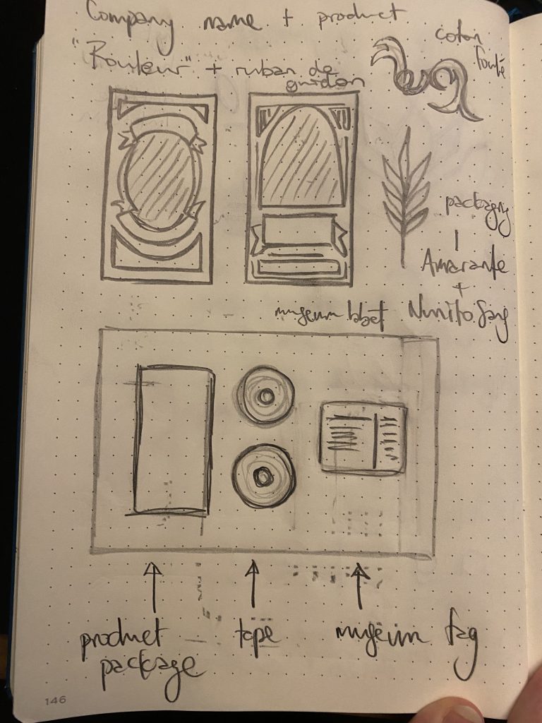 I feel thrilled with how the cyclist illustration came out, and I was a bit sad to lose some of the detail when I condensed the size to fit the packaging. However, attempting a couple of variations of the curved shapes as well as placement of the text on the package took some time. The end result was an enjoyable process of ink on paper. I envisioned that the original package from 1903 would have been an ink-printed process, and I feel that my ink drawing is a close approximation.