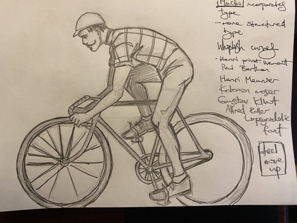 As our studies have moved us into the early 20th century, I have come across an intersection of my interests. I enjoy Art Nouveau’s illustrations and organic whiplash curves, and the beginning of cycling as a sport emerging in 1903.